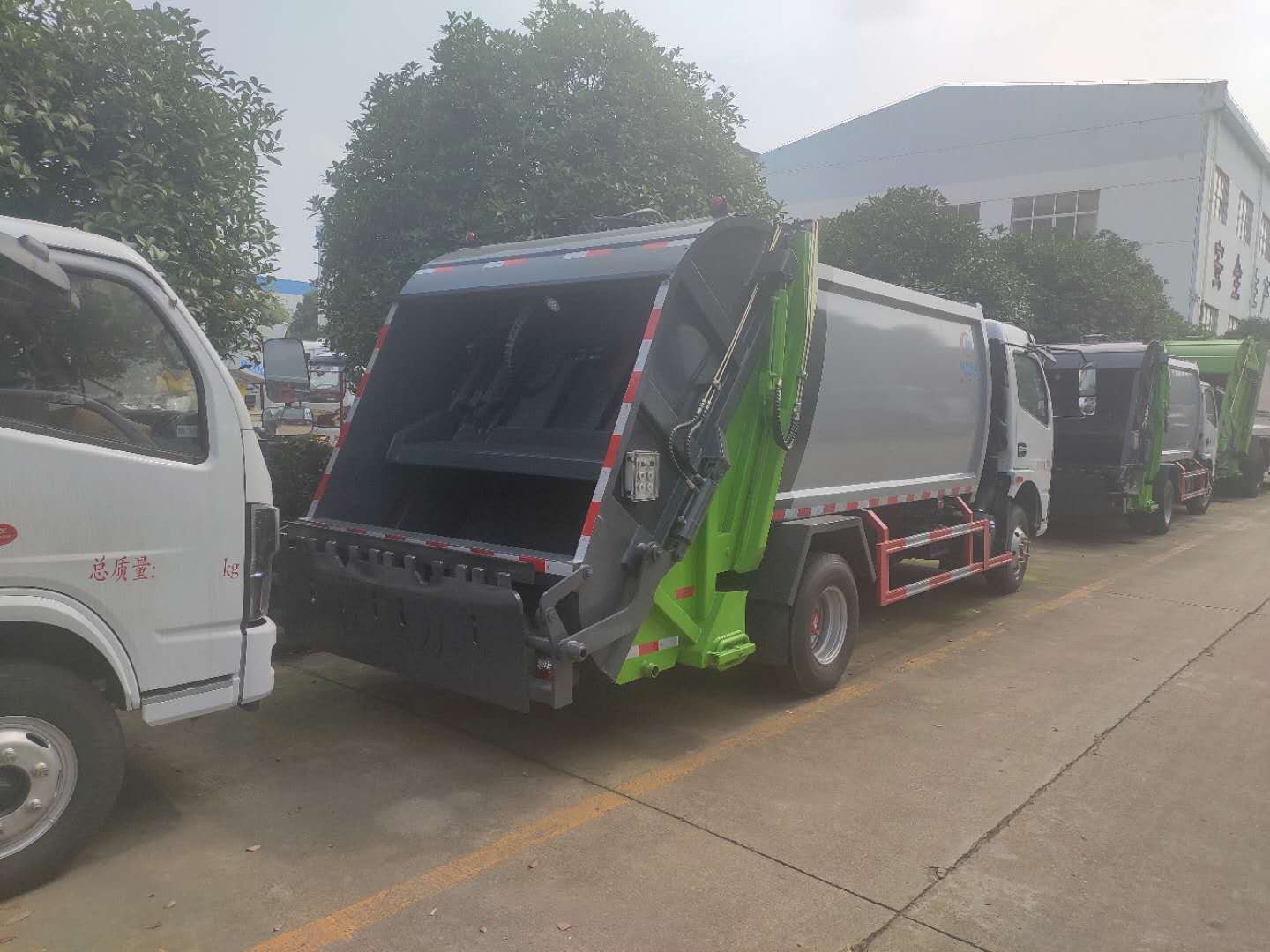 选装多种翻桶(斗)机构 不同用户可根据不同的垃圾搜集方式,选装不同的翻桶(斗)机构:翻标准垃圾铁桶ZBT59003-88(300 L)、塑料垃圾桶(240L)、随车小垃圾斗、密封遮盖式垃圾斗、大垃圾斗。